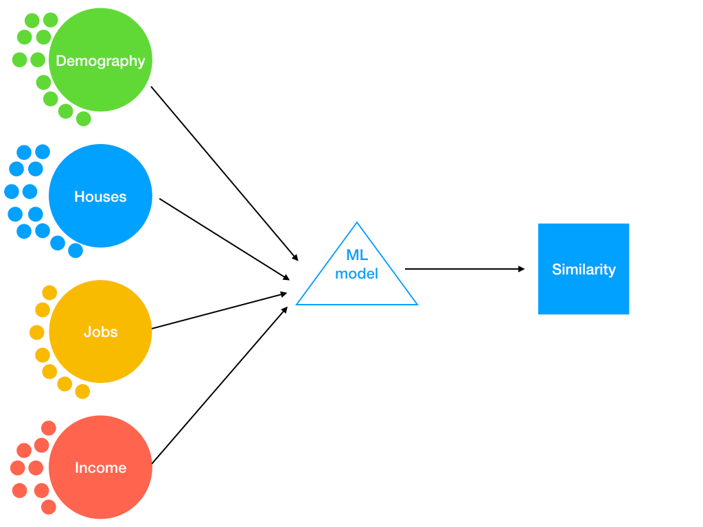 The next issue was the ML model. For the demo, I wanted something that is at least somewhat interpretable instead of a black box, and also fast to compute. There’s practically no limit to how much time you can spend on trying and developing fancy models, so I wanted to stick to something that’s simple enough to run. Explainability of the similarity measures was important, so that I could at least to some extent analyze why the system thinks two areas are similar. Like I said before, it’s already difficult enough to interpret the quality of the recommendations, even without bringing model complexity into the picture.