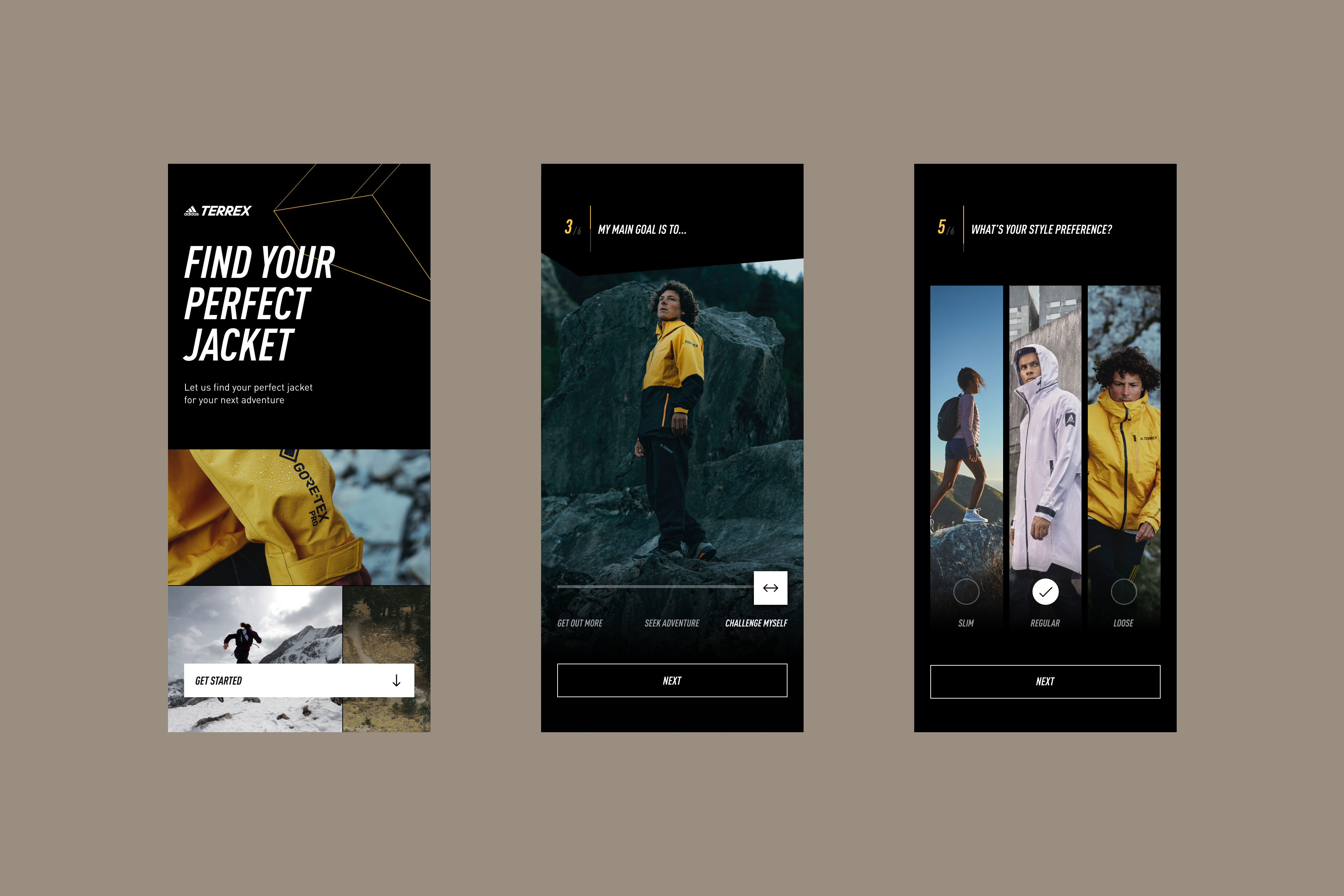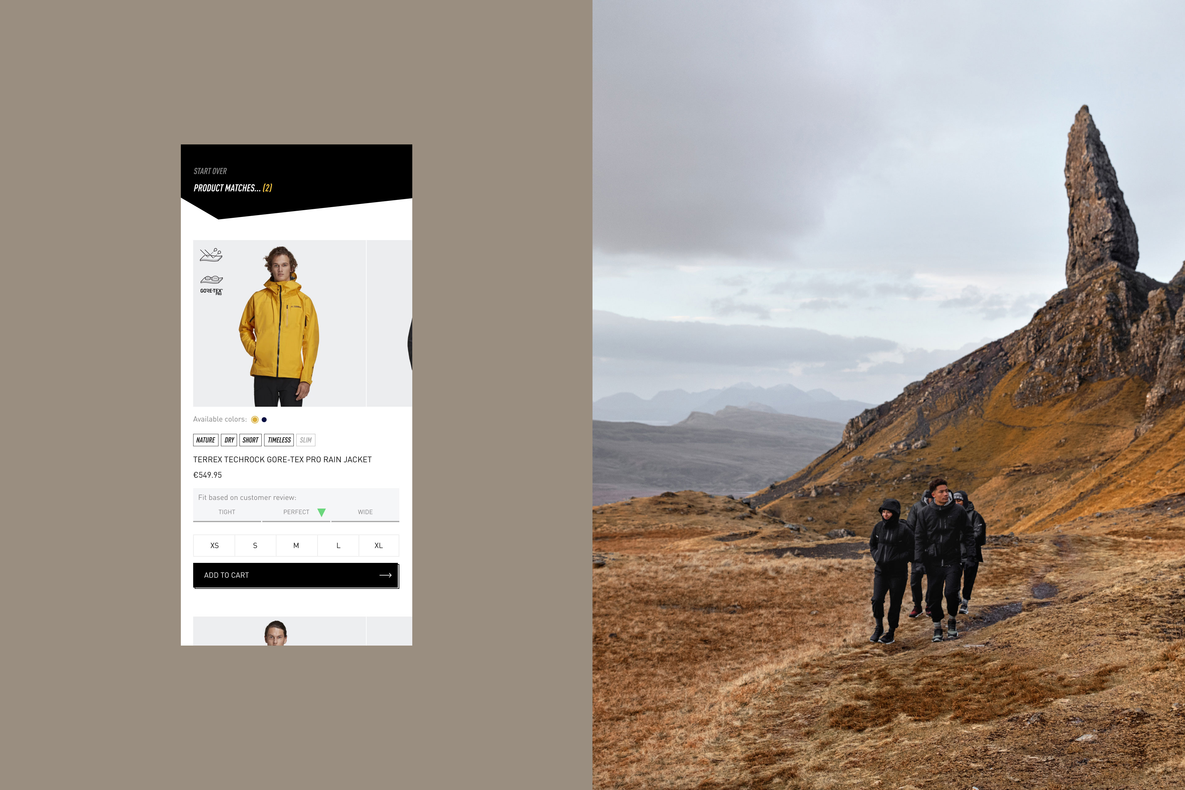 Together with adidas Outdoor, we answered this question by developing the Product Finder: a new, guided digital journey for finding the perfect outdoor workout gear. From jackets to shoes, the Product Finder is a new tool for customers to discover the exact product and fit they need to get the most out of their outdoor adventures.